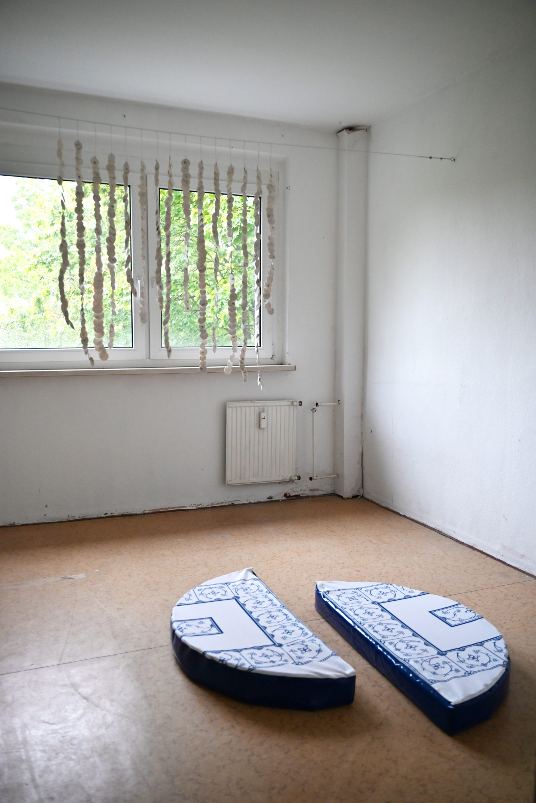 Welche Erfahrungen haben Mütter zu DDR Zeiten gemacht? Welche Erwartungen, Zuschreibungen und Strukturen prägen uns heute als Mütter, und was können wir aus der Geschichte lernen? Wir haben dazu Interviews geführt mit Müttern aus Altenburg, mit Frauen, die zu DDR Zeiten Kinder bekommen haben. Wie erzählen sie ihren Alltag? Wie haben sie Care- Arbeit und Beruf miteinander verwoben? Welche gemischten Platten haben sie serviert? Wir haben mit ihnen ihre Problemlagen, damaligen Träume und spritzigen Erfahrungen ergründet. Wir als junge Mütter wollen in der Vergangenheit im künstlerischen Arbeiten unsere Situation heute reflektieren. Sie formen, neue Fäden spinnen und “starker Hitze” aussetzen – zur Disposition und Diskussion stellen.